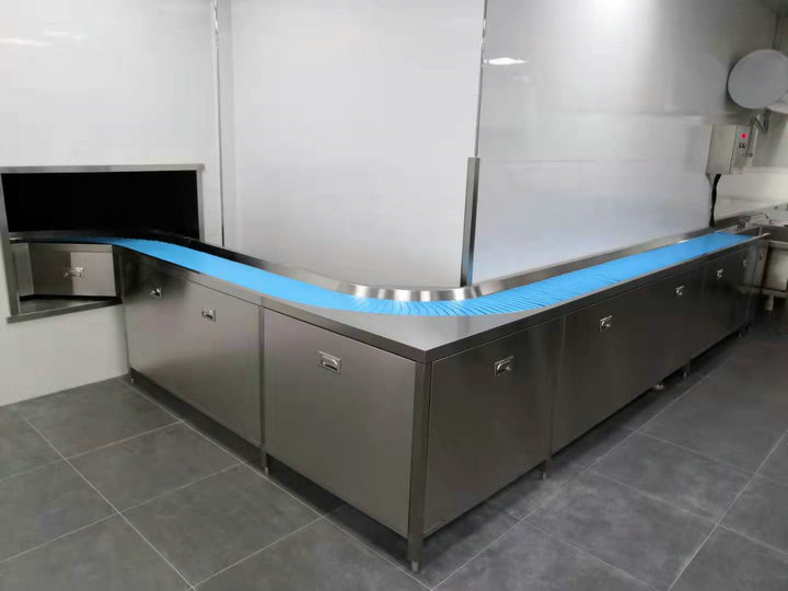·傳送機(jī)自動(dòng)將餐盤傳入洗碗間,降低了操作人員的勞動(dòng)強(qiáng)度。